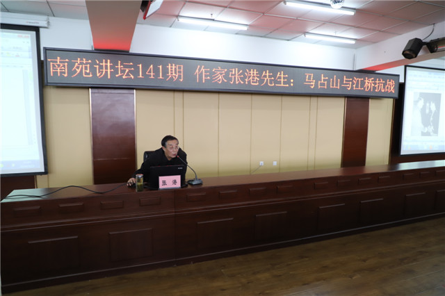 3月19日下午,学院第141期南苑讲坛在图书馆501报告厅举行,知名作家张港先生应邀作题为《马占山与江桥抗战》的专题讲座。学院副院长张振笋、学院团委书记周伟与各系辅导员代表及学生代表共300余人聆听讲座。讲座中,...