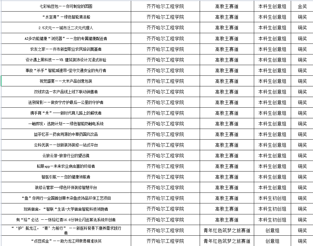 7月27日,我校在第八届中国国际“互联网+”大学生创新创业大赛黑龙江省赛区总决赛上荣获金奖1项,铜奖22项。这是我校“互联网+”大赛的首枚金奖。奖牌总数位于全省本科高校第23位,也是历届以来成绩最好的一届。 黑龙...