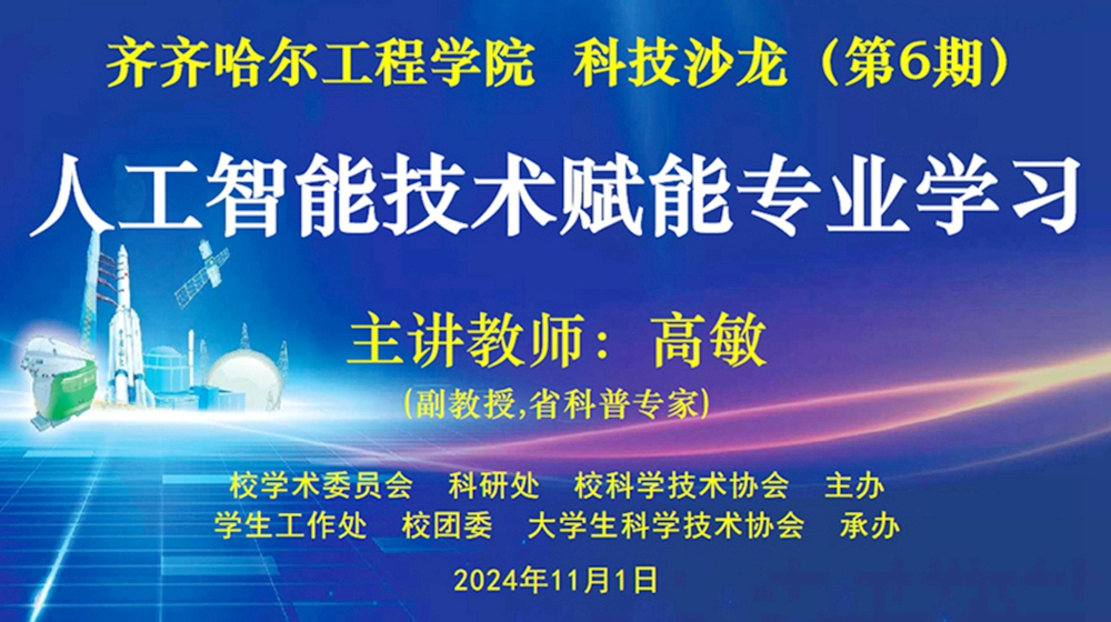11月1日下午,由校学术委员会、科研处、校科学技术协会主办,学生工作处、校团委、大学生科学技术协会承办的第6期科技沙龙在图书馆501报告厅举行。本期科技沙龙邀请省科普专家、信息工程系高敏副教授作题为《人工智能技术赋能专业学习》的专题报告,来自全校各系的近300名学生参加。高敏老师从人类历次工业革命的发生说起,首先系统回顾了人工智能发展历程及重要技术突破,进而阐述了人工智能助力专业学习的方式与方法、技...