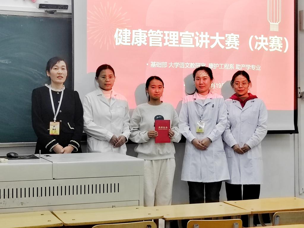 12月19日,基础部大学语文教研室与康护工程系助产学专业在一号教学区1213室联合组织健康管理宣讲大赛决赛,助产学2023级同学参加。基础部大学语文教研室教师于丽媛,助产学专业长孙畅,助产学专业教师孙玉翡、刘丽担任大赛评委。为助力校园北区女性健康管理公司业务发展,积极探索大学语文课程服务助产学专业的创新模式,进一步丰富课程建设内涵,本学期助产学专业大学语文课程特别融入了《黄帝内经》部分内容开展教学。此次...