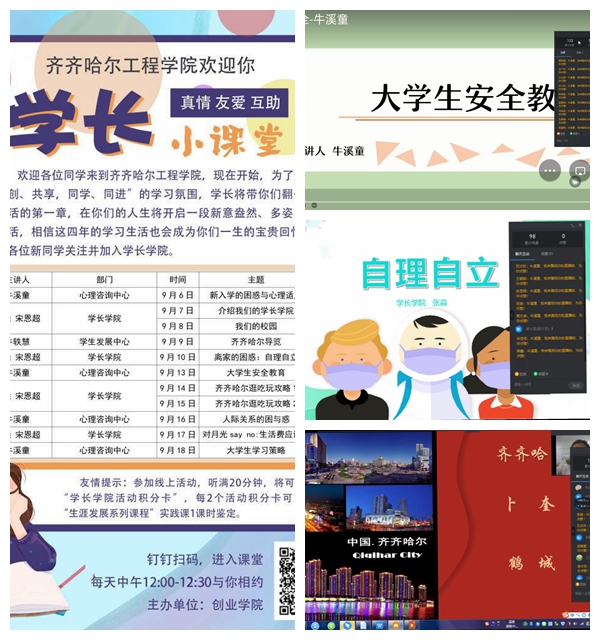 为使2021级新生轻松愉快度过大学军训生活,创业学院从9月6日开始,由学生发展中心教师牛溪童、牛轶慧,学院大三学长张淼、宋恩超组成的线上辅导小组,开启线上学长小课堂,将课堂系列活动贯穿军训间休中。 小课堂以...