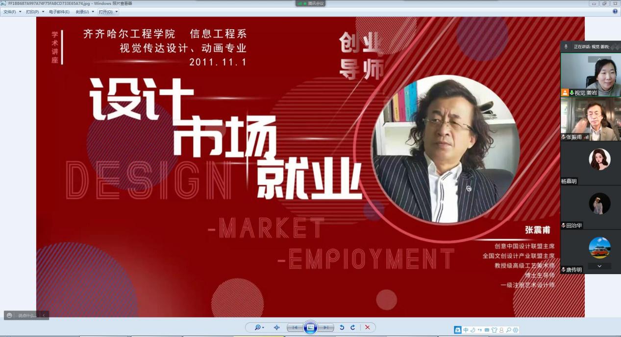 11月1日下午,视觉传达设计专业和动画专业通过腾讯会议平台,联合举办了线上题为“设计、市场、就业”专家讲座,特邀创意中国设计联盟主席、全国文创设计产业联盟主席、高级工艺美术师、博士生导师、一级注册艺术设计...