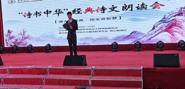 12月6日,由校团委主办,校学生会和初心朗读社团承办的“诗书中华”经典诗文朗读会决赛在学生活动中心举办,校团委指导老师张云惠、孙名序出席本次活动,各系学习部部长、学生百余人参加。 本次活动经过各系初赛、学...