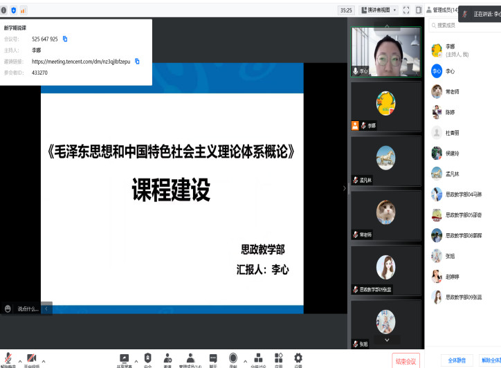 为提升部门教师教学水平、为新学期开课做好准备,1月27日上午,思政教学部通过腾讯会议平台组织教师开展了说课交流活动,下学期任课的所有老师参加,活动由教学副主任李娜主持。 下学期任教《毛泽东思想和...