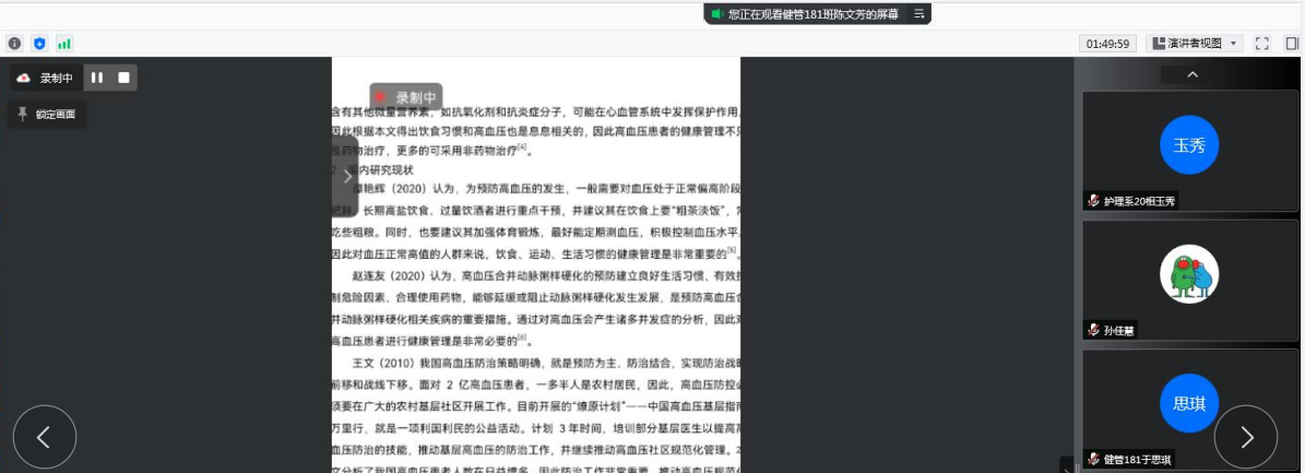 健康与护理系郭玲玲老师于近日在腾讯会议上召开论文阶段进展会议。会上,郭老师首先强调毕业论文设计是一门课程,同学们要认真学习老师推荐的中国大学慕课,熟悉写论文的方法,郭老师分析了三名同学的调查问卷,并且...