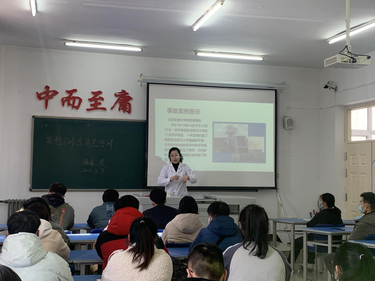 为进一步加强实验(训)室安全管理的规范性,强化学生对实验(训)室的安全意识,3月7日中午,健康与护理系张晓波在一号教学区1215教室,为健康服务与管理专业、护理专业的班级干部进行实验(训)室安全培训。 张晓...