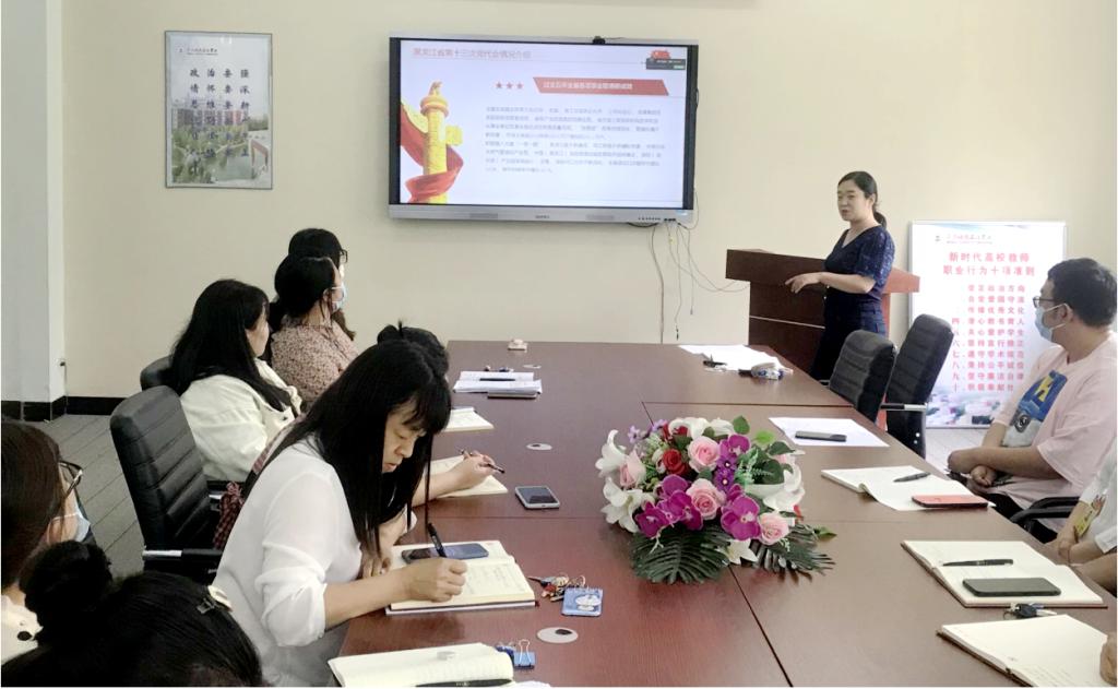 6月24日,思政教学部党支部举办了学习黑龙江省第十三次党代会精神专题宣讲会。党支部书记赵婷婷主持,全体党员教师参加。 会上,赵婷婷围绕省委书记许勤在省第十三次党代会上所作的报告,从本省五年来取得的成...