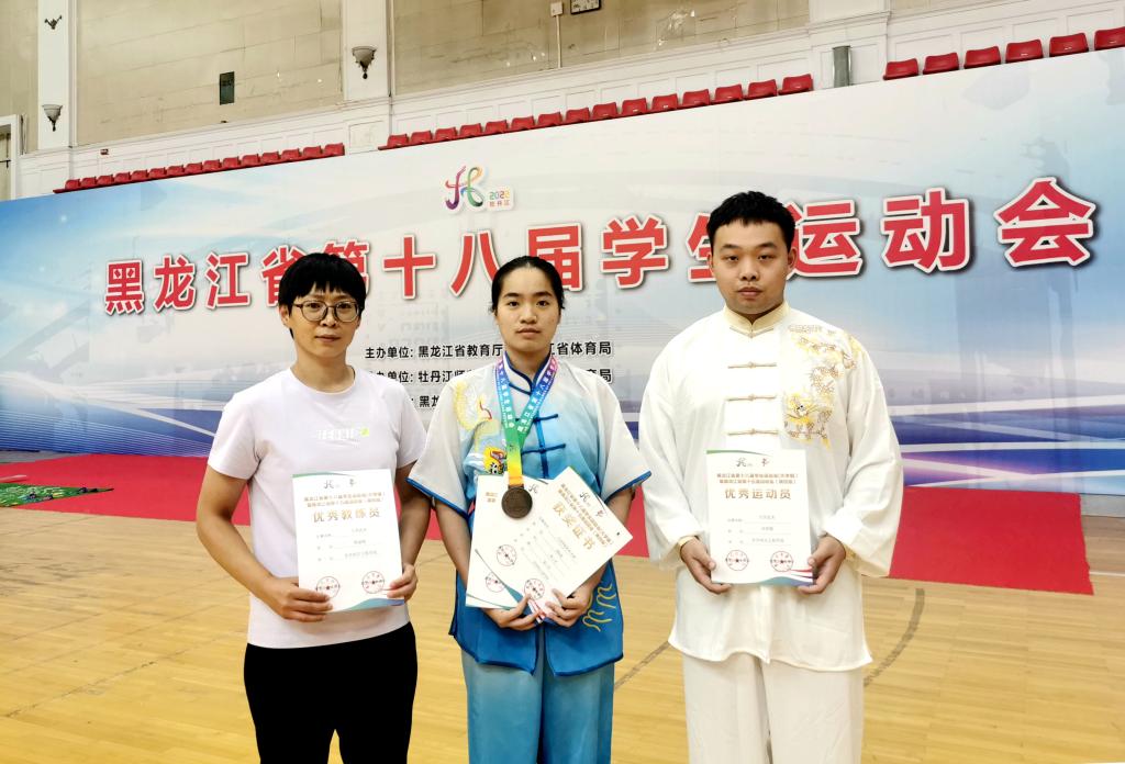 在8月17日至9月15日期间举办的黑龙江省第十八届学生运动会上,我校学生代表队参加了武术和乒乓球二个项目的角逐并获佳绩。 我校武术队的谢阳妮同学获得女子长拳铜牌、女子剑术第四名和女子枪术第四名的好成绩...