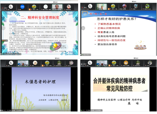10月25日至28日, 健康与护理系与哈尔滨精神专科白渔泡医院通过腾讯会议云端联合开展精神卫生类知识讲座。哈尔滨精神专科白渔泡医院展闯副院长等八位专家主讲,健康与护理系全体教师参加。讲座旨在更好地开展以学生为...