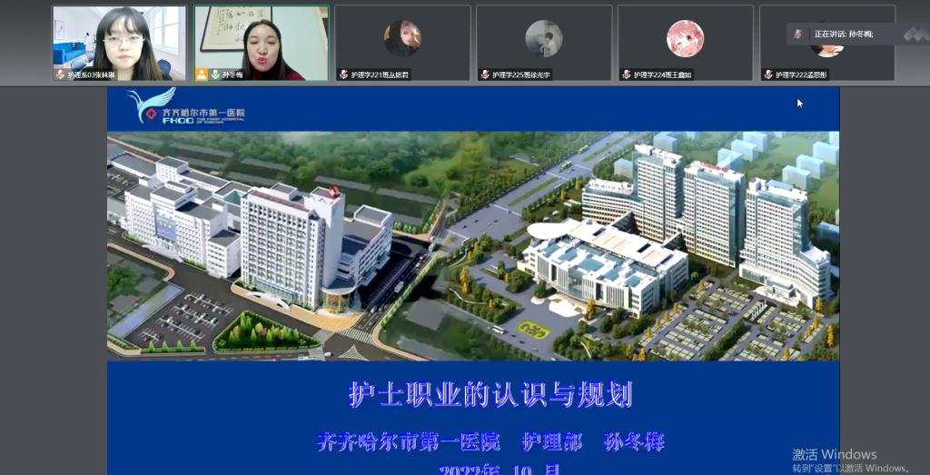 10月31日晚,护理学专业邀请齐齐哈尔市护理学会副理事长、齐齐哈尔护理质控中心主任、齐齐哈尔市第一医院护理部主任孙冬梅为2022级学生作职业前瞻讲座。讲座采用腾讯会议形式进行,2022级全体学生参加。 孙主任以《...