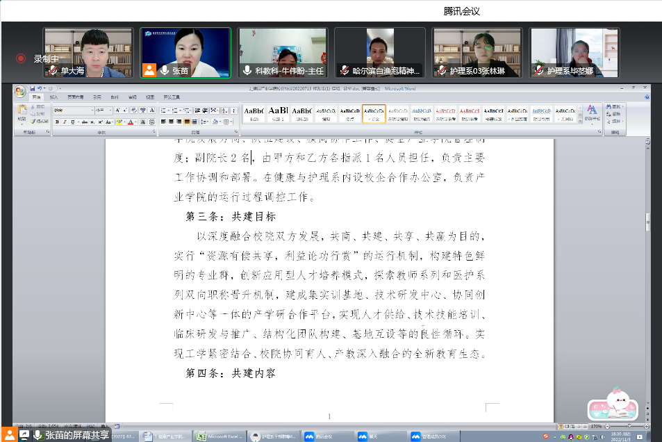 11月3日晚,健康与护理系与哈尔滨精神专科白渔泡医院相聚云端,共同探讨建立健康产业学院相关事宜。系负责人郭玲玲及系部各专业负责人,哈尔滨精神专科白渔泡医院科教科牛伟盼主任及各疗科护士长参会,教学工作副主任...