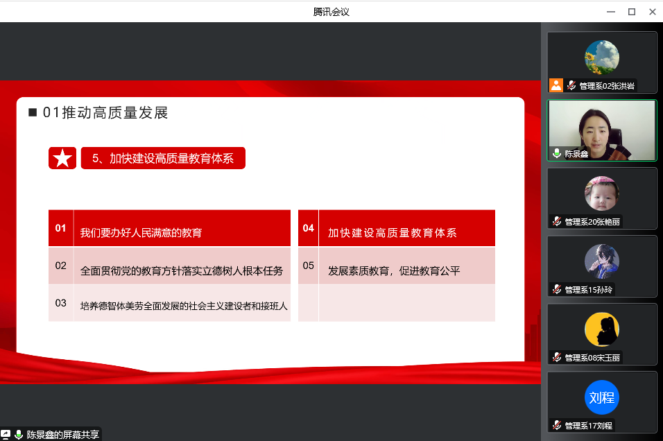 12月29日上午,学校党委党的二十大精神宣讲团成员、党委委员、建筑工程系主任、管理工程系主任陈景鑫通过线上讲座的方式,面向管理工程系全体教职工作题为《未来五年,我们这样做》的专题讲座,并对党的二十大精神进...
