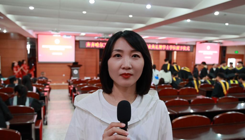 就在毕业典礼进行的同时,场外也传来了声声祝福。 学校管理工程系互金211 班的吕秀茹,是一名优秀的学生,曾获得过学校颁发的“丁香学子”荣誉称号,并担任校园调频台播音部部长。 她说:“在这里,我祝愿学哥学姐们...