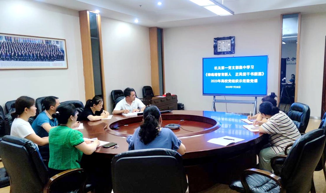 7月28日下午,机关第一党支部集中学习观看“铸魂增智育新人 正风促干书新篇”2023年高校党组织示范微党课。支部全体党员参加,党支部宣传委员王鑫主持。 观看示范微党课后,支部书记张平强调,微党课学习是为深入开...