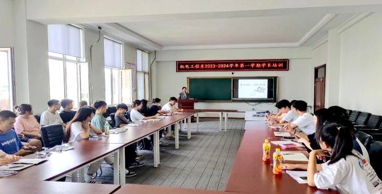 8月16日,机电工程系在图书馆608会议室组织开展2023-2024学年第一学期学长培训活动。系全体新生学长及新生辅导员参加,王虹老师主持。会上,王虹、董晓亮、于海龙、张勇四位教师以不同主题、不同视角讲“干货”、谈成长。王虹老师以《学为成长 榜样引领》为主题,介绍了新生学长的主要职责,指出,新生学长应作为新生的引路人,应尽快明确工作职责和工作内容,进一步规范新生学长团队工作流程,充分发挥优秀学长榜样和引领的...