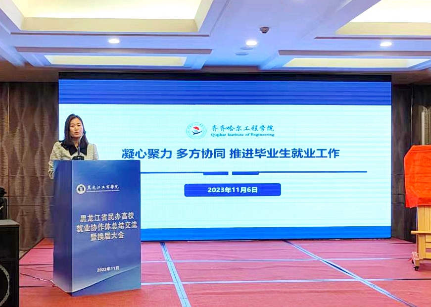 为全面提升全省民办高校就业工作实效,实现共享共赢的精准就业工作模式,省大学生就业创业指导中心于11月6日在黑龙江工商学院举办黑龙江省民办高校就业协作体总结交流暨换届大会,学校学生发展中心负责人康静代表学校参加本次会议。全省共有四所高校在会议中进行交流发言。康静以“凝心聚力、多方协同、推进毕业生就业工作”为题进行交流汇报。主要从学生主体、专业主导、校友支持、家长参与四个方面详细介绍学校就业工作推进情...