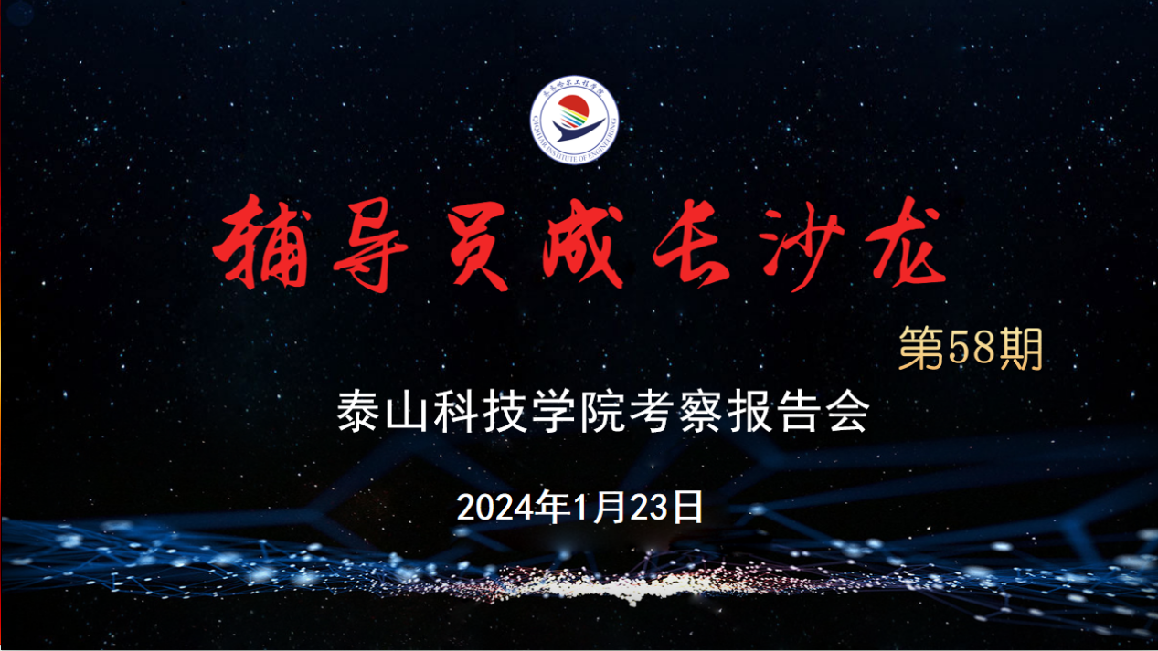 1月23日下午,第58期辅导员成长沙龙在学校2号教学区2508会议室举办,主题为“泰山科技学院考察报告会”。学生工作处负责人王丽萍、各系党总支副书记、全体辅导员、学生工作处人员参加会议。 日前,我校学生工作团队一行7人,由校团委张云惠老师带队赴山东省泰山科技学院开展了为期三天的学生工作考察交流。报告会上,7位老师分别从不同角度复盘总结,交流学习成果,分享心得体会及工作思考。张云惠老师从泰山科技学院的校园...