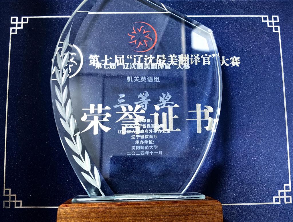 近日,第七届“辽沈最美翻译官”大赛传来捷报,基础部大学外语教研室老师刘双丽获得机关英语组三等奖,我校首次参赛即获奖。本届比赛以“聚焦凝心聚力打造新时代‘六地’、谱写东北全面振兴新篇章”为主题,决赛在沈阳师范大学开赛,包括机关组、高校组、来华留学生组等共9个组别,共279人参赛。刘双丽老师以Black Dragon’s Progress(黑龙在跃)为题,多角度呈现了黑龙江省在东北振兴、积极响应“国之大者”的号召下所采取的...