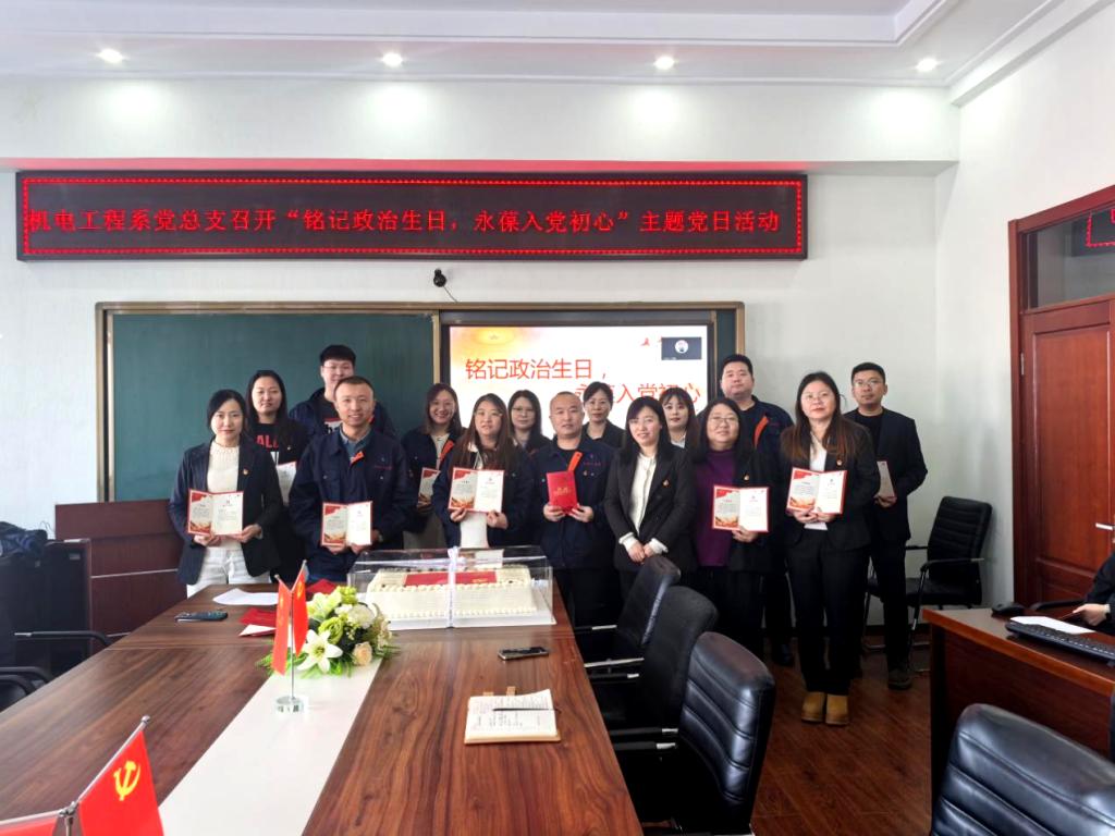 为增强党员的责任感与使命感,1月15日,机电工程系党总支在图书馆608会议室组织召开“铭记政治生日,永葆入党初心”主题党日活动,全体党员齐聚一堂,共同回顾入党历程,坚定理想信念。活动由机电工程系党总支组织员张海城老师主持,机电工程系党总支书记刘微,副书记于海龙,全体党员教师及党员学生代表参加活动。 首先,于海龙带领全体党员宣誓,铿锵的誓言在会议室中回响,触动了每一位党员的心灵,带来了深刻的震撼与净化。...