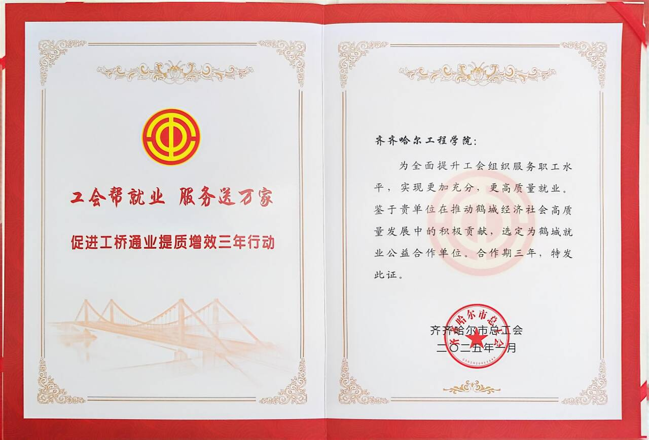 3月12日,全市工会系统促进“工桥通业”提质增效动员部署会议在市总工会二楼会议室召开。会上,市总工会公布了关于选定(聘)鹤城就业公益合作单位(企业)和推荐官(形象大使)结果,并颁发了鹤城就业公益合作单位(企业)和推荐官(形象大使)代表证书。我校被选定为“鹤城就业公益合作单位”,并获得荣誉证书。接下来,我校将积极响应国家和市总工会的号召,利用好地方应用型本科高校资源,充分发挥办学优势,以多年就业工作...