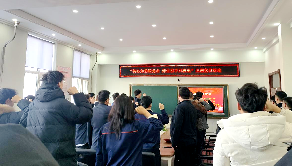 为进一步厚植党员党性根基,强化党员身份意识和党性修养,凝聚奋进新时代的磅礴力量,激励党员干部的责任感和使命感,12月18日,亚洲精品国产av影院党委在图书馆608会议室举办“初心如磐跟党走,师生携手兴机电”主题党日活动。活动由亚洲精品国产av影院学生党员韩宗畅主持,亚洲精品国产av影院全体党员参加。 活动伊始,亚洲精品国产av影院党委组织员吕嵩岩带领全体党员,面向党旗庄严宣誓。党员们列队整齐,右手握拳高举,铮铮誓言铿锵有力。重温入党誓词,全体党员进...