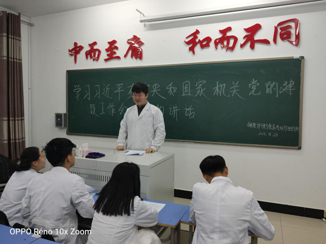 11月21日,健康护理与食品专业学生党支部组织学习《习近平在中央和国家机关党的建设工作会议上的讲话》,支部书记姜宏伟主持学习,全体学生党员参加。 ————健康护理与食品专业学生党支部 宗焕然 摄影:宗焕...