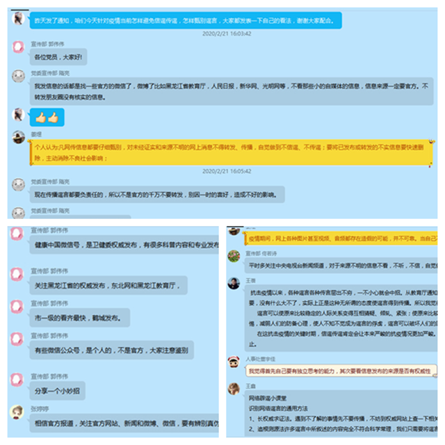 2月21日,机关第一党支部通过网络平台召开党员会议,组织支部全体党员围绕新冠肺炎疫情防控期间如何加强组织纪律性进行讨论。 各位党员在线上就如何甄别谣言、如何避免信谣和不慎传谣,分别表明自己的态度,同时就甄...