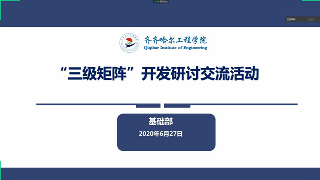 6月27日下午,基础部在线组织课程“三级矩阵”开发研讨交流。 此前,基础部做出开展课程“三级矩阵”开发研讨交流的安排,组织学习教学常识,进行课程矩阵知识培训,由各教学团队就“三级矩阵”开发进行集体讨论,汇...