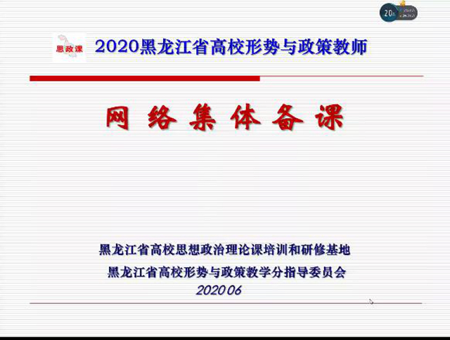 省委教育工委、省教育厅高度重视思政课的线上教学,6月10日-17日,黑龙江省高校形势与政策教学分指导委员会先后组织两场线上集体备课,我校思政教学部组织部门全体教师参加。 本次集体备课的专题分别为“从新冠肺炎疫...