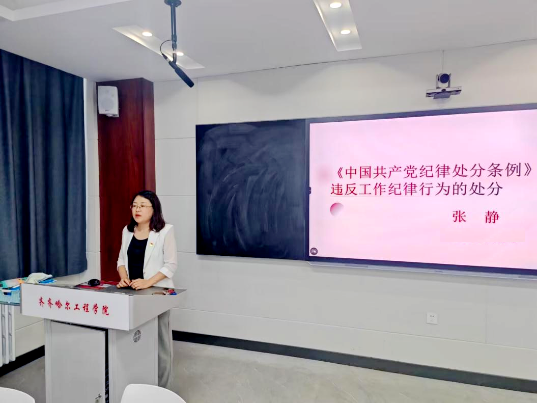 近日,副院长张静在图书馆414室开展《中国共产党纪律处分条例》宣讲活动。基础部党支部、机电工程系车辆工程专业党支部以及机关第二党支部全体党员参加。张静首先强调了《条例》在学校工作中的指导地位,表示《条例》是全体党员必须遵守的行为准则,对于维护党的纪律、保障党的纯洁性具有重要意义。随后,张静结合学校实际工作,对《条例》中关于违反工作纪律行为处分的三个重要条款进行了深入解读。指出,第一百三十条主要规...