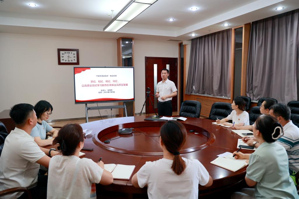 为落实省委教育工委“千党党课进支部”工作要求,7月9日,学校党委书记郭伟东在所属机关第一党支部讲专题党课。本次专题党课由支部书记王蓓主持。郭伟东书记以《学纪、知纪、明纪、守纪,以高质量党纪学习教育引领事业高质量发展》为题,从提高政治站位,强化党纪学习教育的政治性;增强行动自觉,深刻认识党纪学习教育的重要性;坚持问题导向,增强党纪学习教育的针对性;抓实学习举措,提升党纪学习教育的实效性等4个方面深...