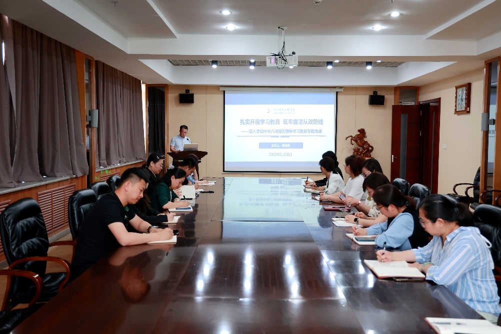为推动深入贯彻中央八项规定精神学习教育走深走实,进一步强化党员干部的纪律意识和规矩意识,近日,机关第二党支部在图书馆414室召开专题学习会,副校长张静以“以党的作风建设为引领,推动学校高质量发展”为题讲授专题党课。机关第二党支部全体成员参加学习。会议由支部书记李文禹主持。会上,张静首先强调了中央八项规定及其实施细则的重要意义和新时代加强党的作风建设的重要性,细致介绍了贯彻落实中央八项规定精神以来...