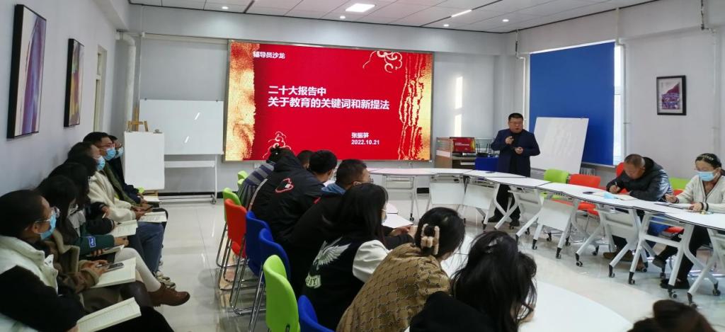10月21日下午,学校第23期辅导员沙龙在二号教学区2102会议室举行,张振笋副院长作《二十大报告中关于教育的关键词和新提法》专题辅导报告,学生工作人员40人参加学习活动。 张副院长阐述了二十大召开的背景及其历史...