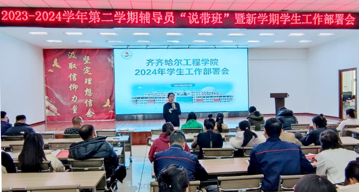 近日,学生工作处在2号教学区2508教室组织召开2023-2024学年第二学期辅导员“说带班”暨新学期学生工作部署会,常务副院长陈景鑫出席会议,各系主任、党总支副书记、全体学生工作人员参会,学生工作处郭慧莹主持会议。本次辅导员“说带班”活动采取校系两级进行,现场采取双抽形式确定校级汇报人员。五系辅导员分别从班情学情、问题分析、带班计划、管理思路、特色工作(一班一品)等方面进行系统阐述,重点体现了育人工作的...