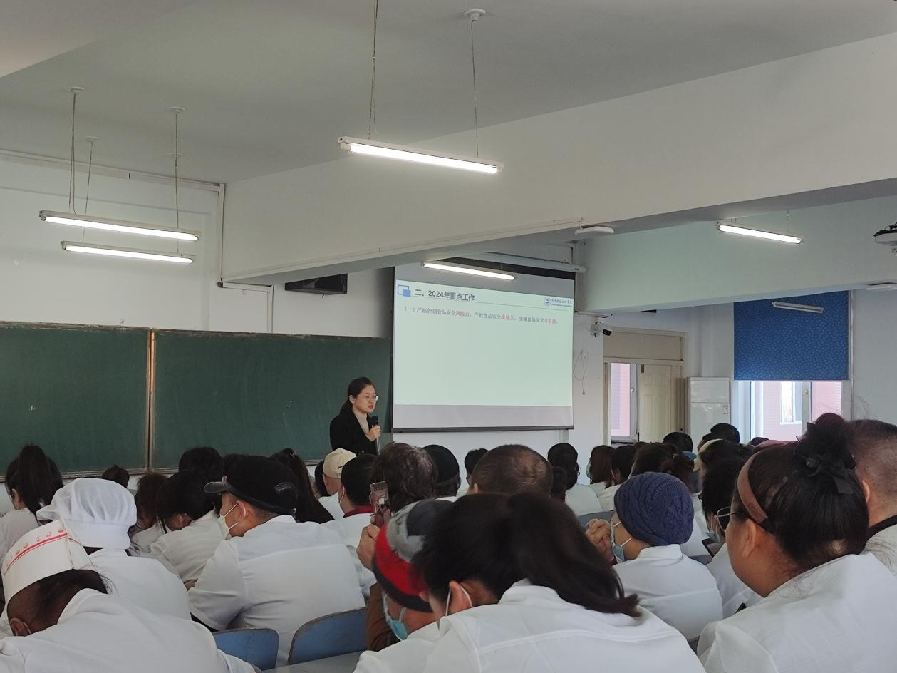 新学期伊始,为把食品安全主体责任落到实处,增强食品经营者的安全意识,保障学生的就餐安全和营养健康。3月2日上午,学校总务处组织全校餐饮从业人员105人参加食品卫生安全知识培训。副院长白雪、齐齐哈尔市市场监督管理局食品科刘文武科长,与餐饮从业人员分别进行了讲座。白雪以《以学生为中心的餐饮文化》为题,介绍了学校“三位一体”的特色餐饮文化、回顾了2023年的工作情况,并部署了2024年的重点工作。刘文武以《高校...
