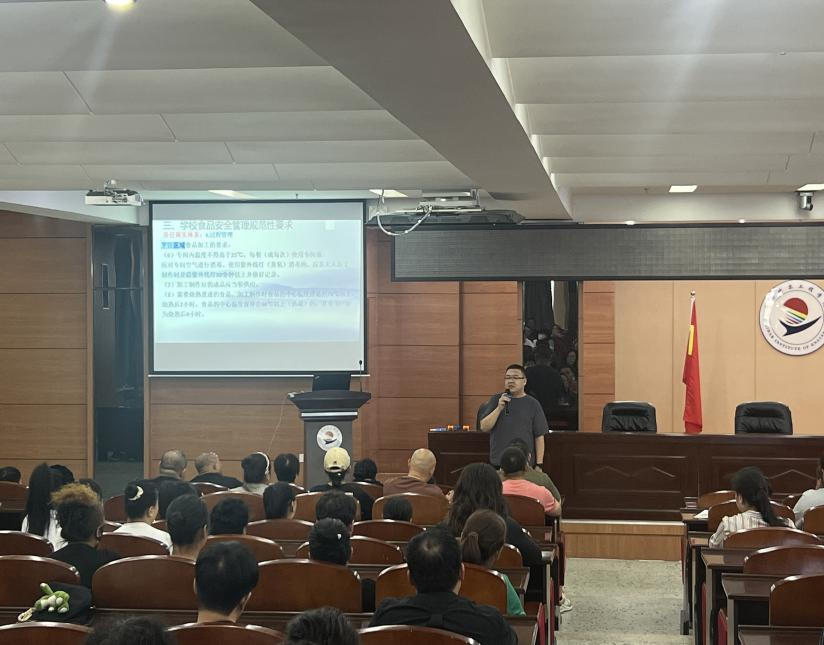 为进一步强化校园食品安全监管,守护全校师生“舌尖上的安全”,8月27日,学校总务处在图书馆601报告厅开展餐饮从业人员岗前培训及考核活动。龙沙区市场监督管理局食品科科长巩亚楠、总务处副处长宋兴蕾、食品科全体以及相关从业人员共100余人参加。培训会上,巩亚楠强调,学校要切实抓好秋季学期校园食品安全监管工作,落实食品安全主体责任,细化风险管控清单,严格执行“日管控、周排查、月调度”机制;要定期检查维护设施...