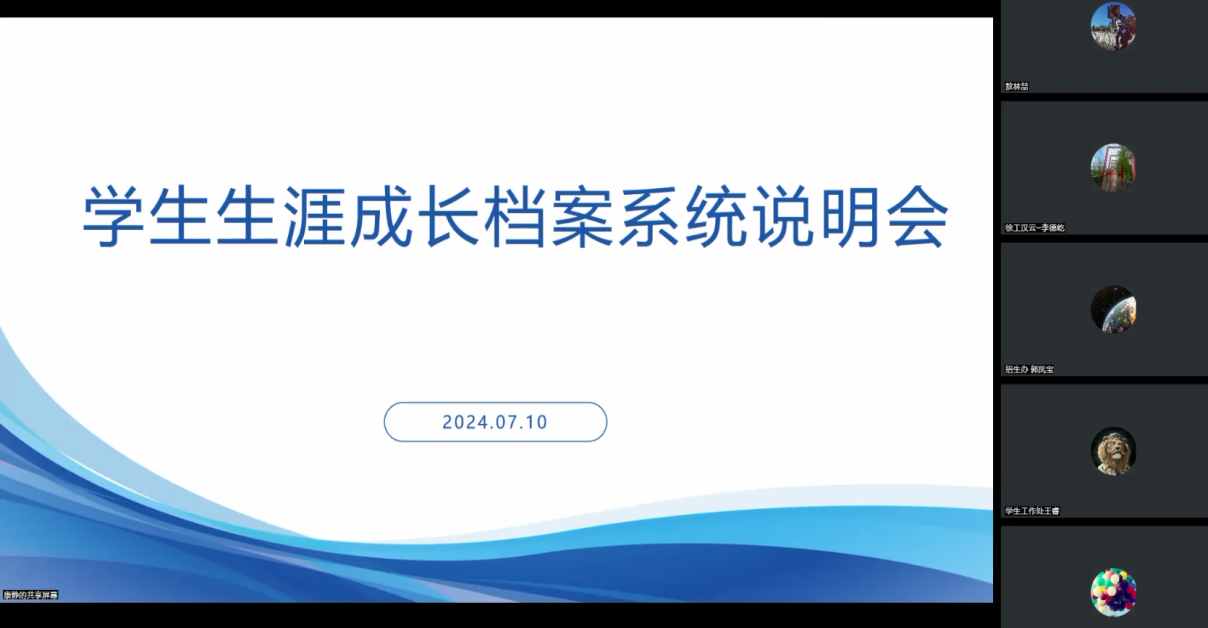 7月10,学生发展中心线上召开学生生涯成长档案系统说明会。常务副院长陈景鑫出席会议。人事处、教务处、学生工作处、招生办公室、创业学院、建筑工程系、管理工程系、康护工程系、信息工程系、机电工程系等部门负责人以及档案系统搭建厂商,天津汉云工业互联网有限公司姜红杰工程师参加会议,学生发展中心负责人康静主持会议。首先,康静介绍了学生生涯成长档案系统建设的主要目的和意义,以及系统搭建的前期准备和过程。随后,...